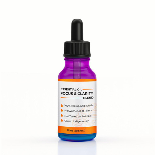 Focus & Clarity Essential Oil Blend features sharp herbal notes layered with fresh citrus to promote alertness. The scent is well suited for workspaces or moments that call for mental engagement.
