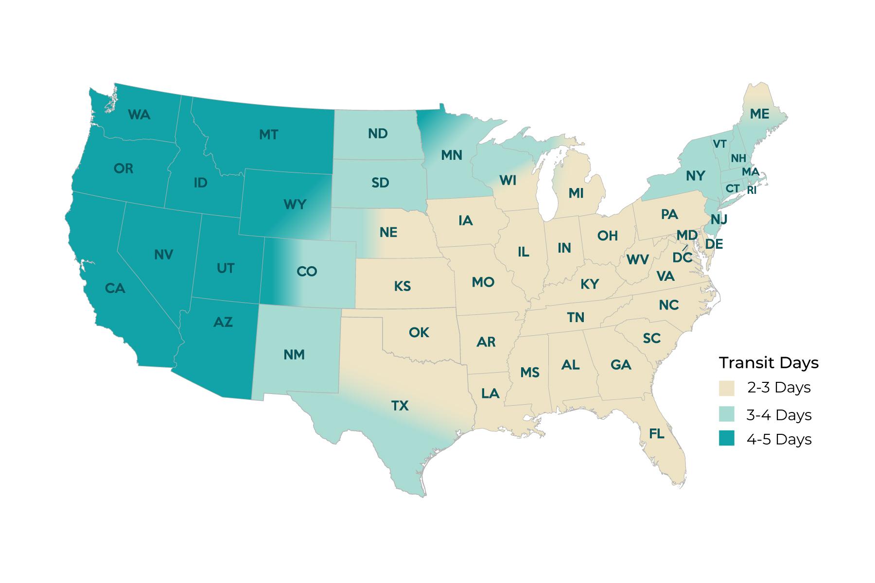 Use this as a general guide. Weather and carrier delays may affect actual delivery times.